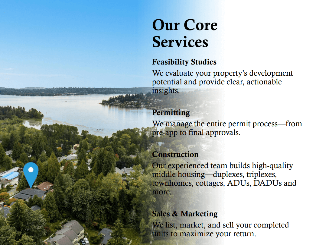 Washington State has changed its residential land use laws to address the housing crisis, now allowing multiple homes on a single residential lot. Previously, “single-family” zoning meant only one home per lot—adding more required a lengthy and expensive subdivision process.